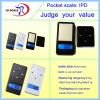 pocket scale JR IPD 100G*0.01G Scale size(L*W*H) 75mm 42mm 12mm Tray size(L*W) 42mm 33mm Screen size(L*W) 32mm 12mm Unit G OZ OZT DWT Capacity and Resolution 50g*0.01g 100g*0.01g 150g*0.1g 300g*0.1g Packaging Scale+plastic bag +blister &packaging+ instruction book+ battery+ Color box+ inner carton +master carton Inner carton: 50pcs/box master carton: 100pcs/box Color box size (L*W*H) 108mm 65mm 25mm Inner carton size(L*W*H)340mm260mm125mmMaster carton size 360mm 270mm 265mm Inner carton weight Net weight 3KG Gross weight 3.12KG Master carton weight Net weight 5.9KG Gross weight 6.7KG Qty of Units / 20’ Container 93,000PCS Qty of Units / 40’ Container 209,300PCS Qty of Units / 40’ HQ Container: 263,500PCS Features: Power On Self Testautomatic zero trackingTare full capacity30 seconds auto power-off (time can be set by client)Battery included. 6. Package: plastic bag +blister &packaging+ instruction book+ battery+ Color box+ inner carton +master carton
